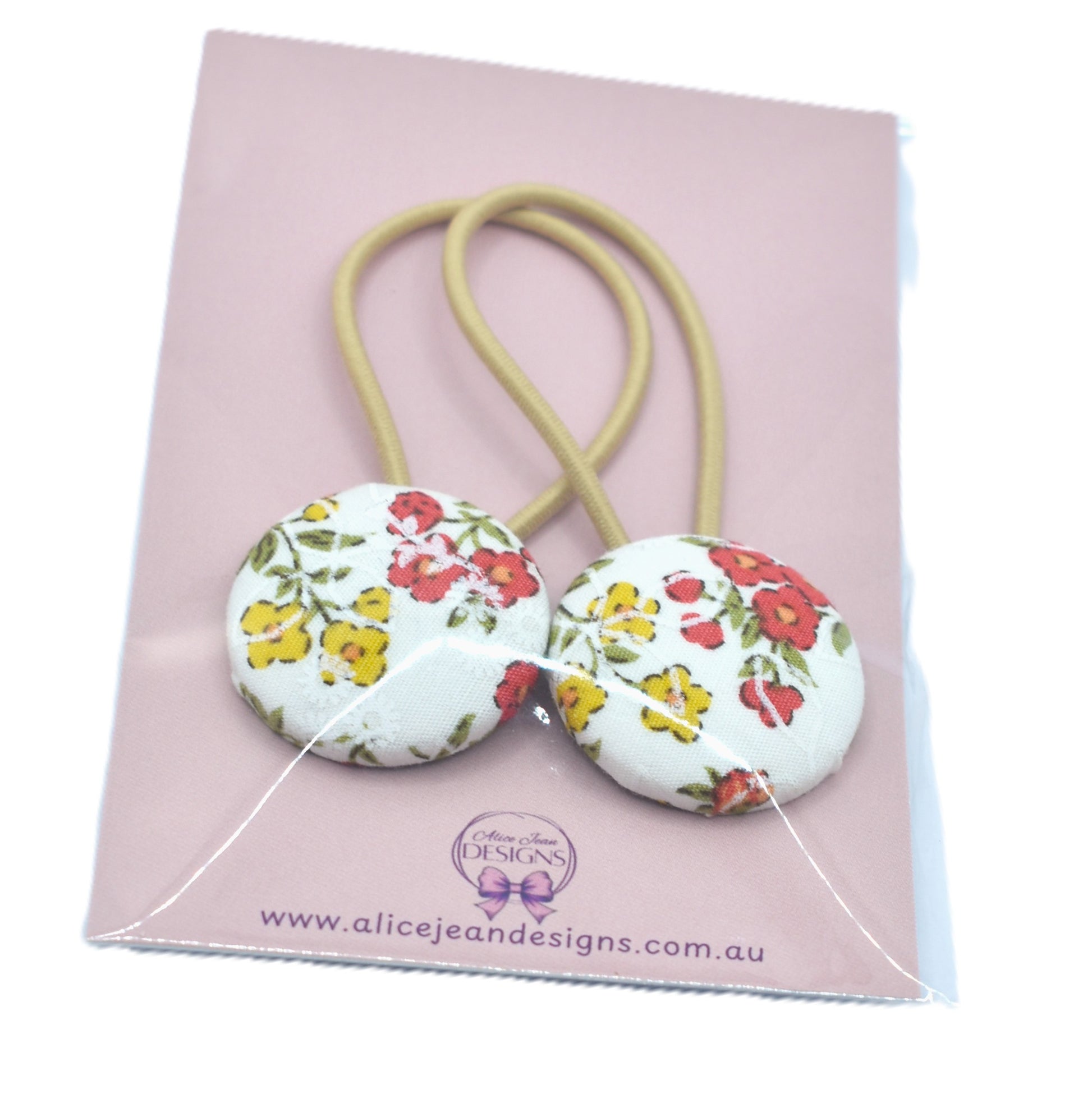 Our button hair ties are made with 28mm buttons and are a great size for children from 3 years of age, right through to adults