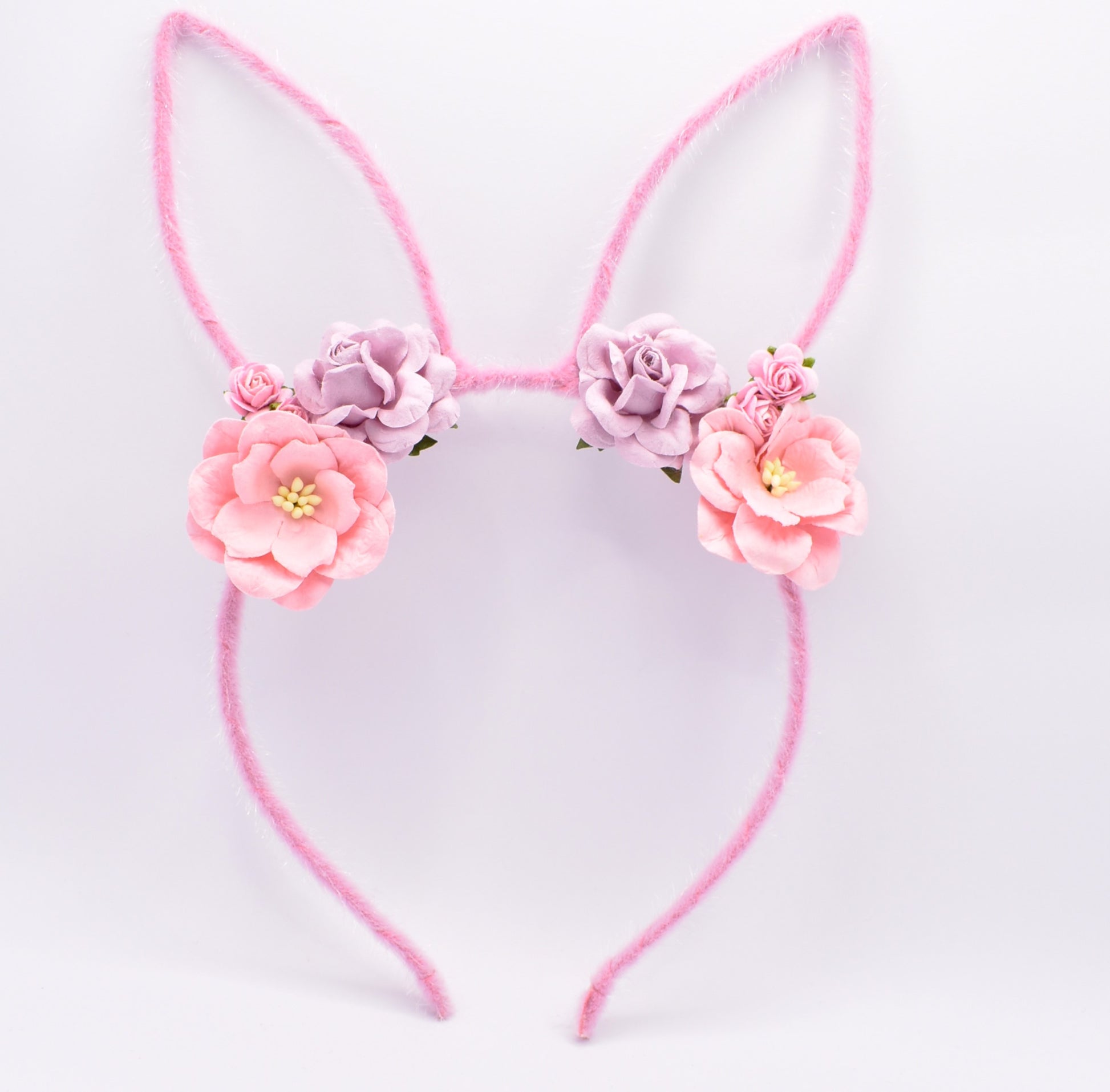 These beautiful floral bunny ears would be the perfect addition to your little girl's Easter outfit. Featuring stunning mulberry paper flowers in a range of pretty colours.